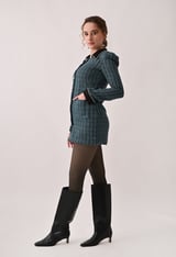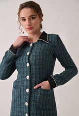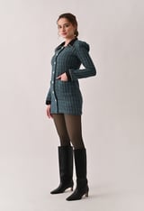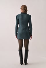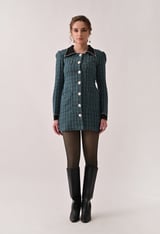 Green Tweed Mini Blazer Dress with Contrast Collar