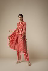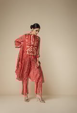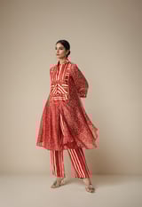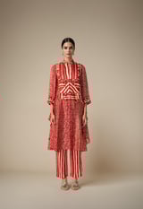 Maroon D-Cut Modal Satin Kurta with Embellished Trim