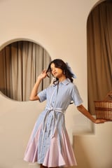 Lake and Lilac Striped Shirt Dress