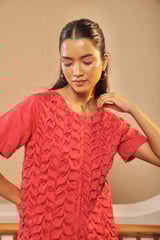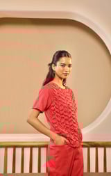 Crimson Smocked Shirt