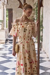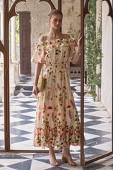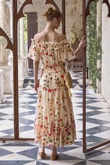 Beige Floral Off-Shoulder Broderie Maxi Dress