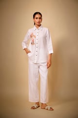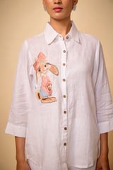 Pure Linen Ehite Cute Bunny Emb Shirt