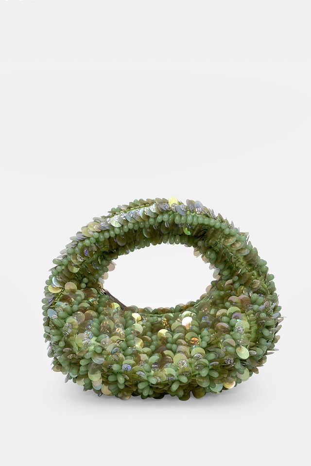 Pistachio Bloom Luxe Embellished Beaded Bag