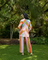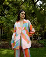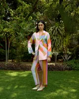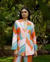 Blue Geometric Stripe Blazer and Pants Co-ord Set