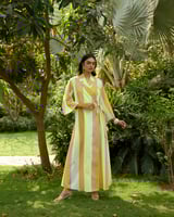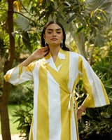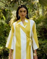 Yellow/White Colorblock Maxi Wrap Dress