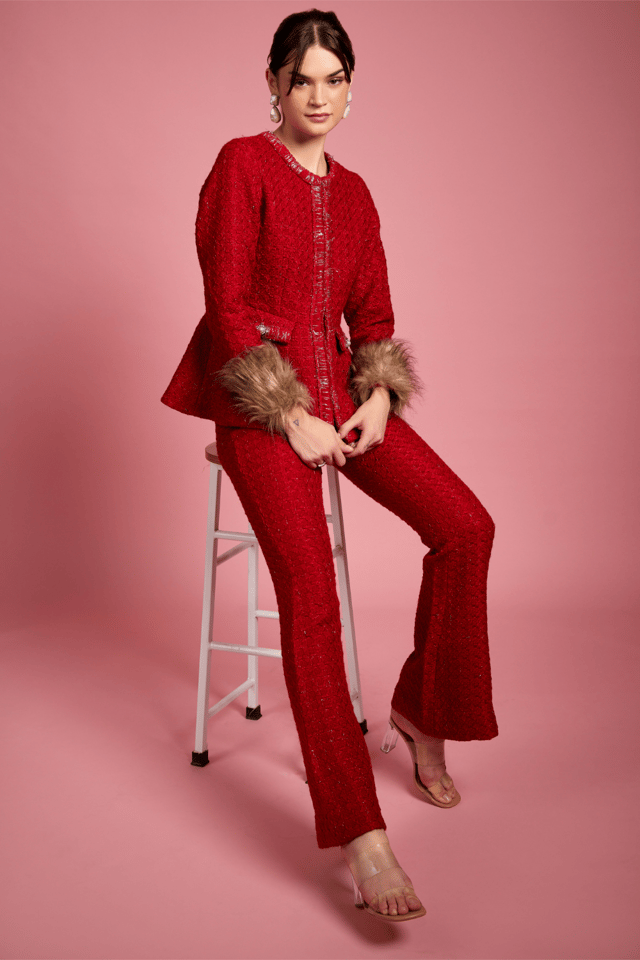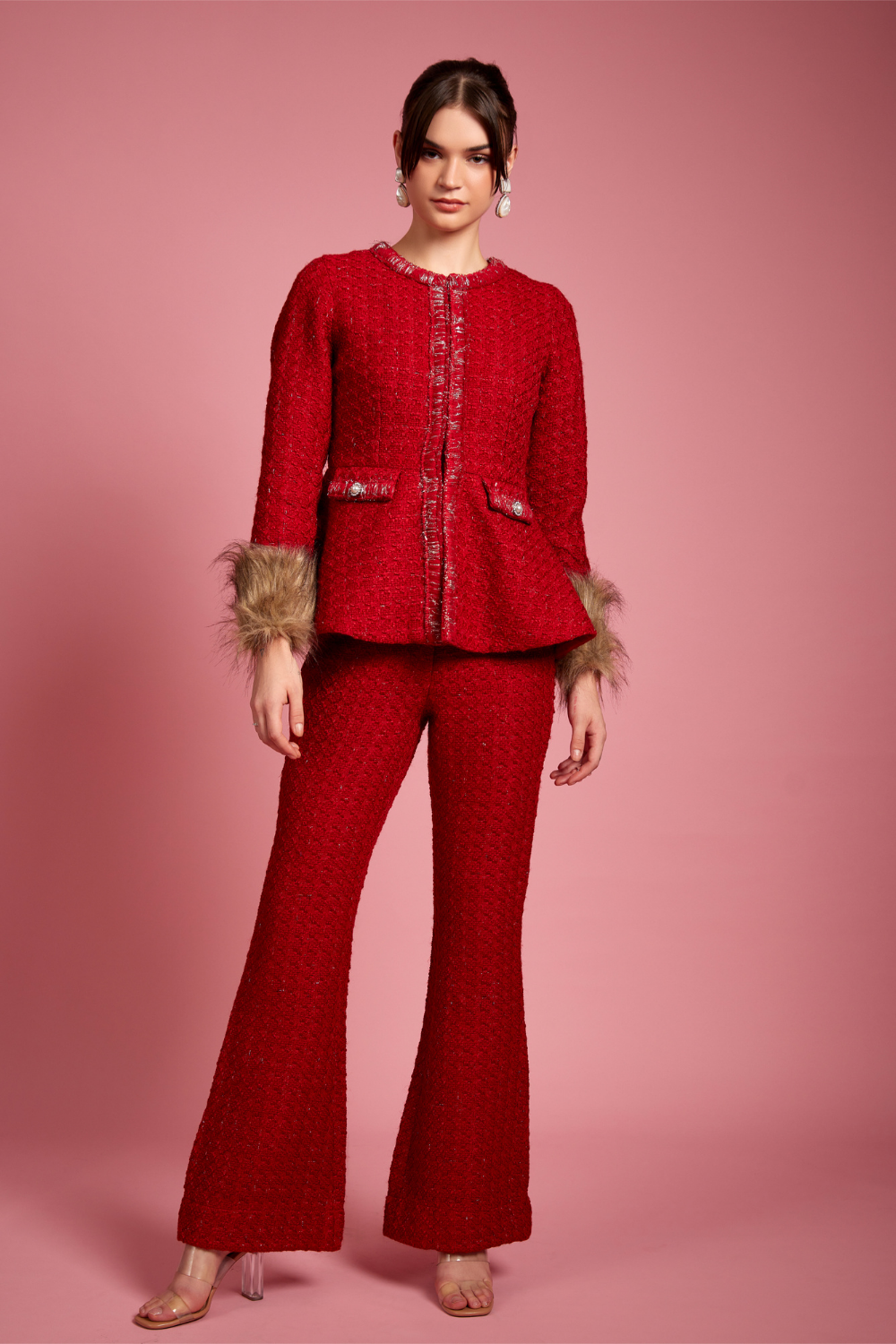 Zella Tweed Peplum Top with Fur