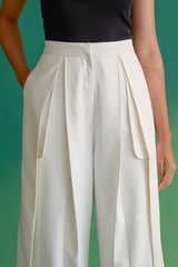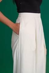 Ivory High-Rise Wide-Leg Pleated Trousers