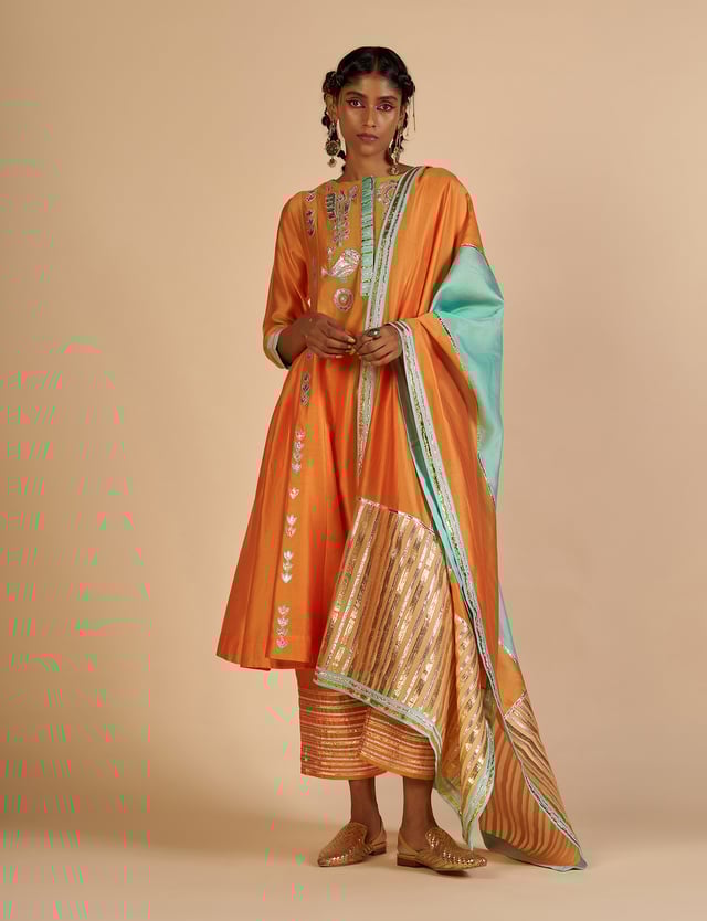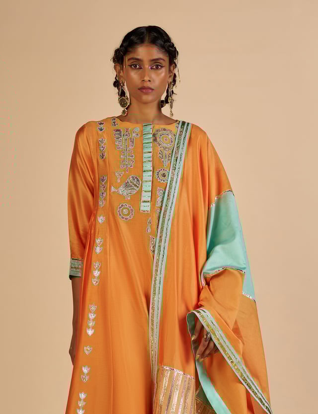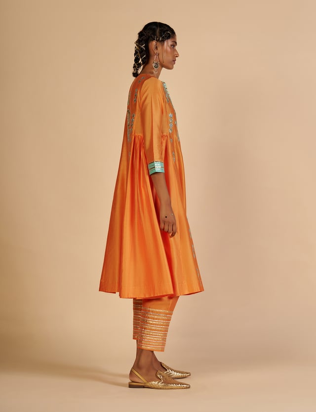 Embroidered Gathered Kurta