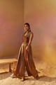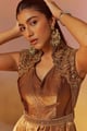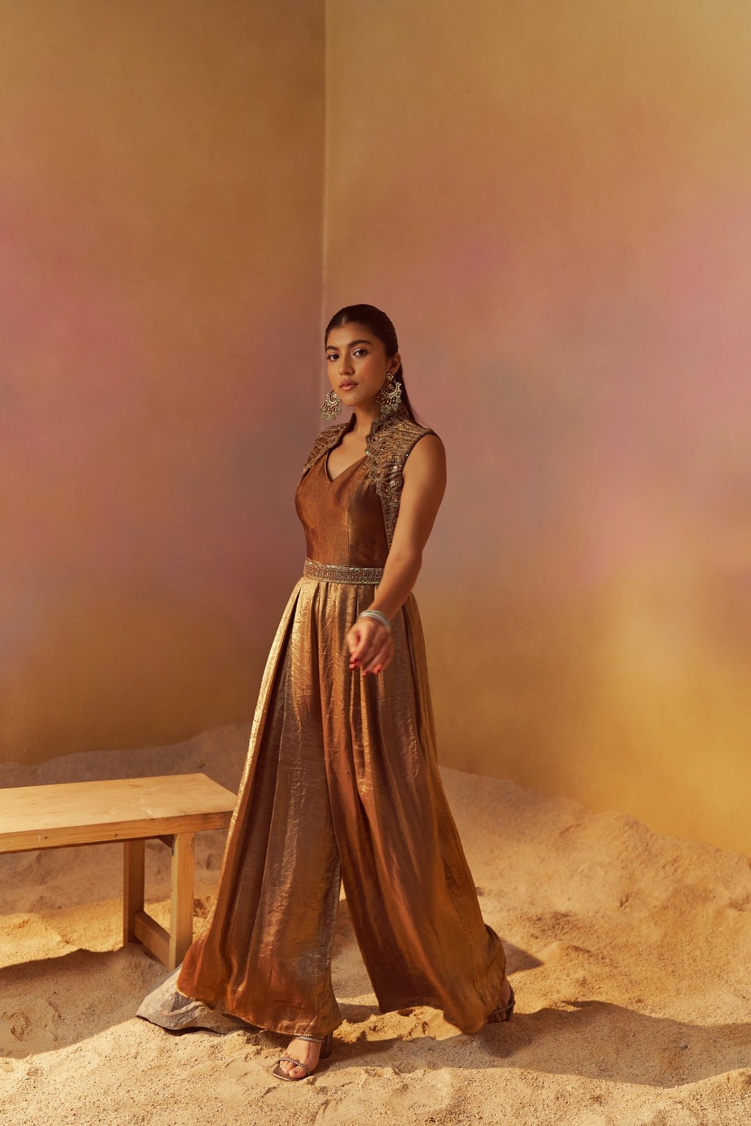 Shimmer Gold Jumpsuit with Attached Jacket with Hand Embroidery
