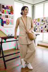 Beige Three-Piece Tailored Co-ord Set with Longline Jacket