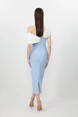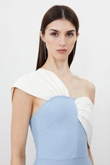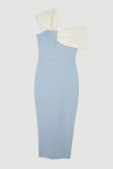 Light Blue One-Shoulder Colorblock Midi Dress