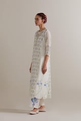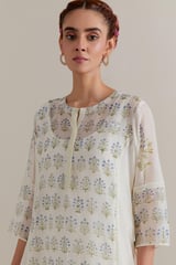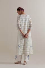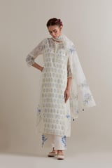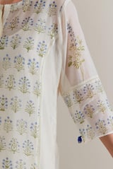 Off-White Floral Block Print Cotton Chanderi Kurta Set