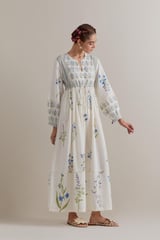 Off-White Floral Yoke Long Dress