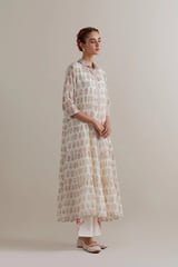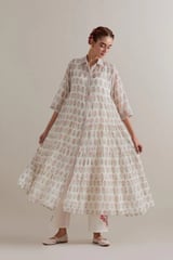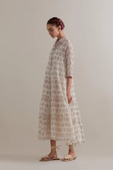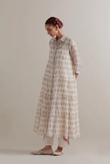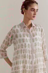 Off-White Floral Tiered Kurta Set
