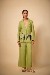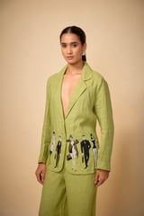 Pure Linen Pista Green Doodle Ebroidered Blazer
