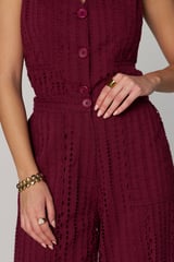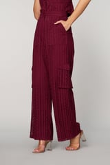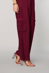 Wine Schiffli Cutwork Wide-Leg Cargo Pants