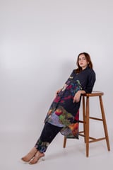 Black Blooms Tunic Set