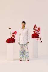 Floral Printed Linen Wide Leg Pants