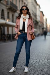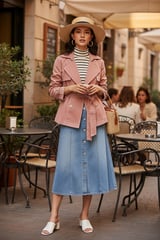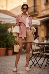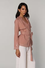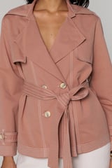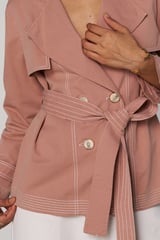 Pink Belted Double-Breasted Trench Jacket