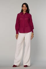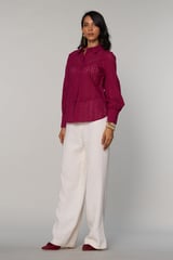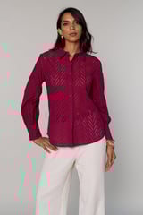 Burgundy Cotton Schiffli Cutwork Button-Down Shirt