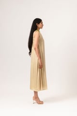 Ecru-Green Halter Neck Dress
