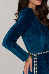 Teal Velvet Sweetheart Neck Full Sleeve Jumpsuit