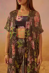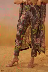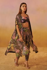 Enchanted Flora Sequins Georgette Flora Cape And Pant With Printed Bustier