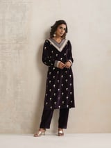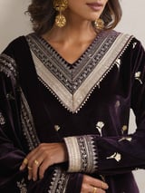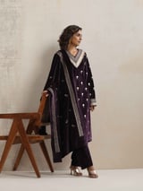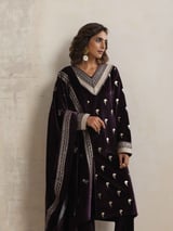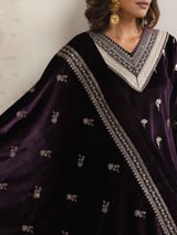 Velvet Floral Embroidered Kurta Pant Dupatta Set