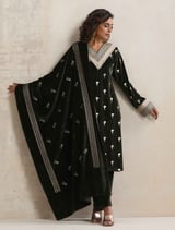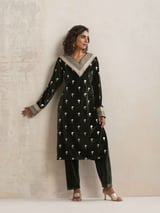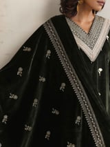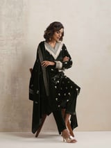 Velvet Floral Embroidered Kurta Pant Dupatta Set