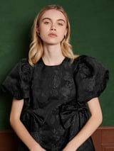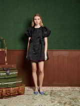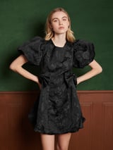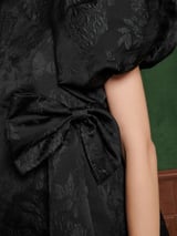 Coal Black Jacquard Bubble Hem Mini Dress with Bows