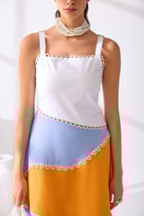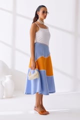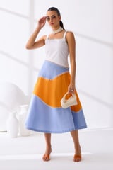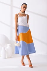 White Orange Blue Colorblock Fit and Flare Midi Dress