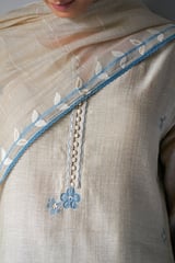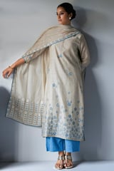 Beige and Light Blue Straight Kurta Suit Set with Dupatta