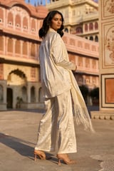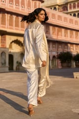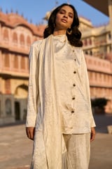 Ivory Crushed Scarf-Drape Shirt with Gold Buttons
