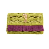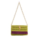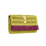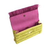 JENA Poppy Green Slim Raffia Clutch with Gold Emblem