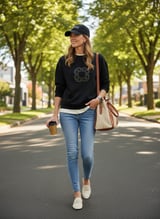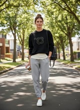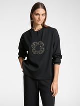 Black Boxy Sweatshirt with Tonal Embellished Motif