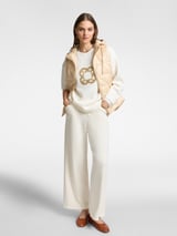 White Pullover Sweatshirt with Gold Monogram Embellishment