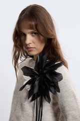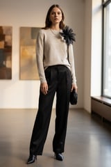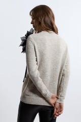 Ivory Knit Pullover Sweater with 3D Floral Shoulder Detail