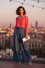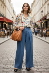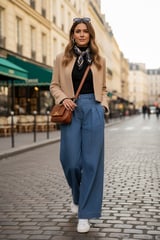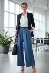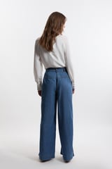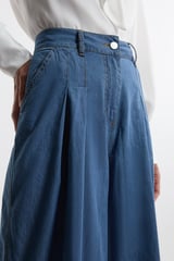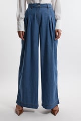 Light Blue High-Rise Pleated Wide-Leg Denim Jeans