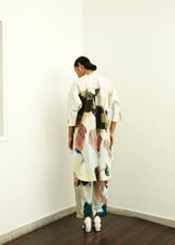 Abstract Print Ivory Tapered Pants with Elasticated Back Waist