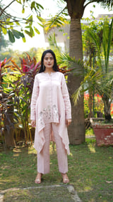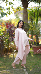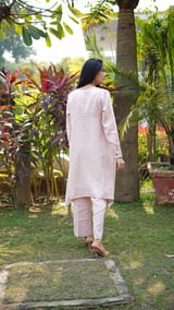 Light Pink Linen High-Low Embroidered Tunic Kurta