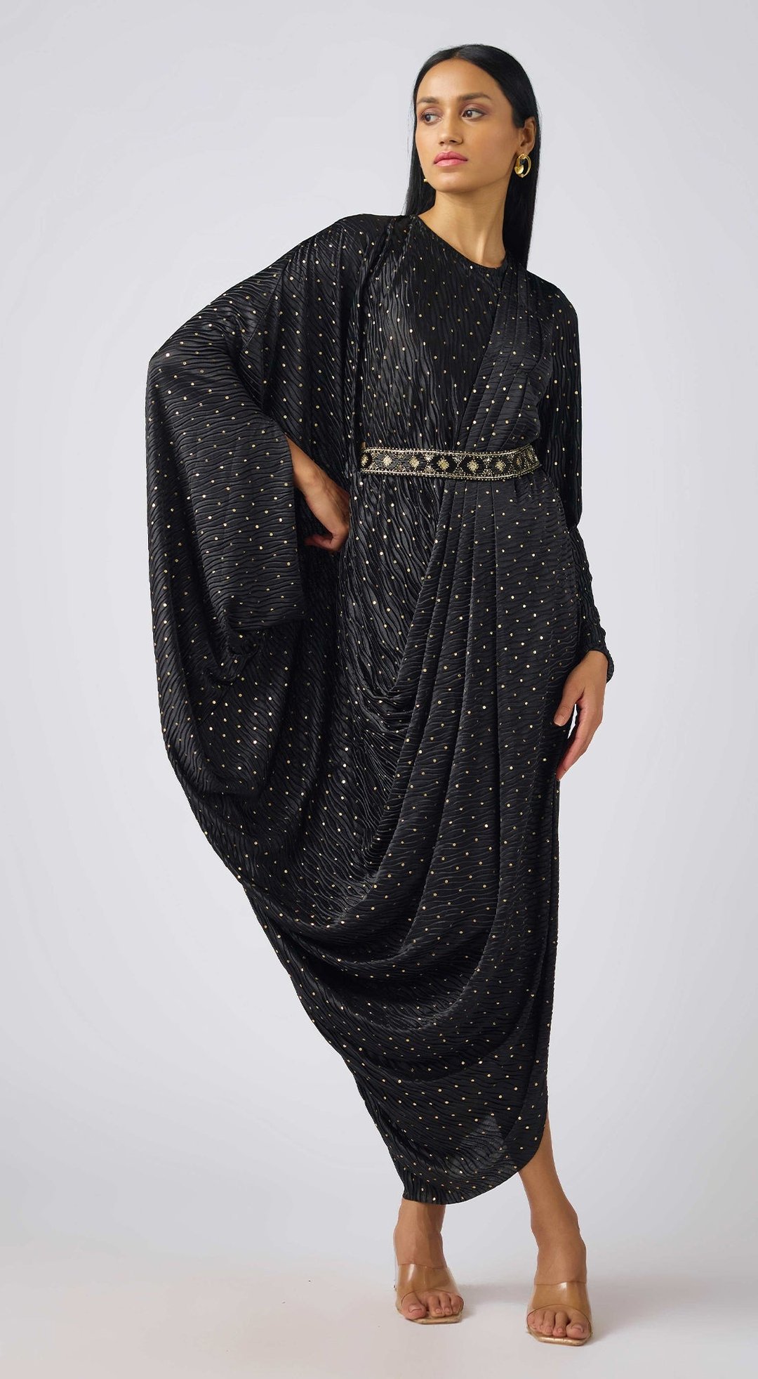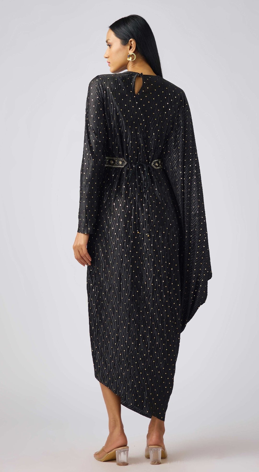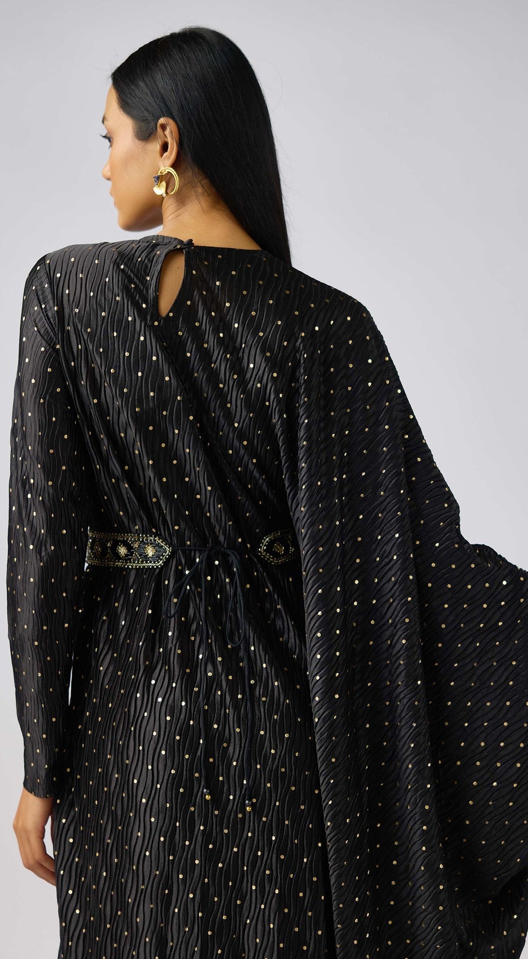 Black Crushed Organza Embellished Dress