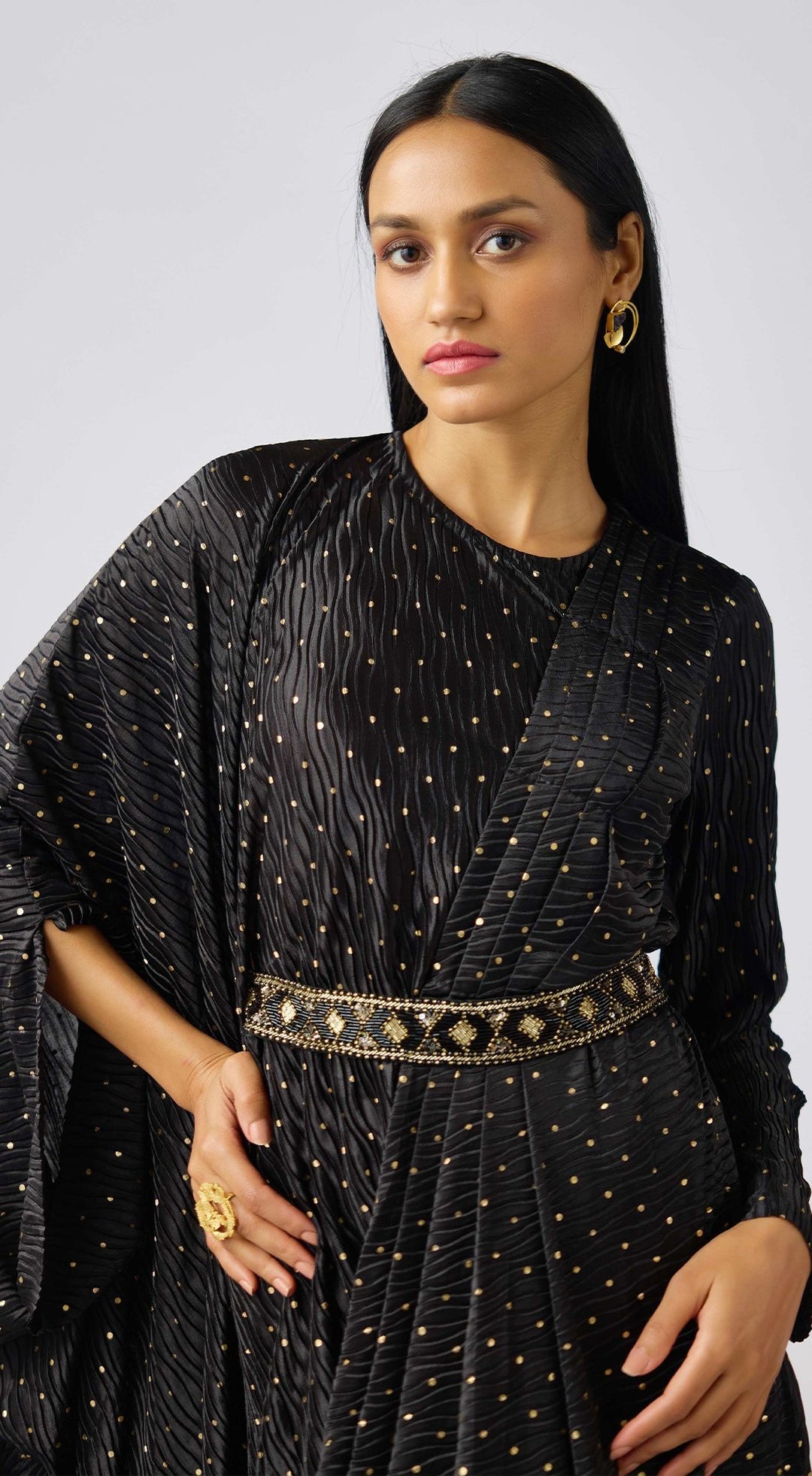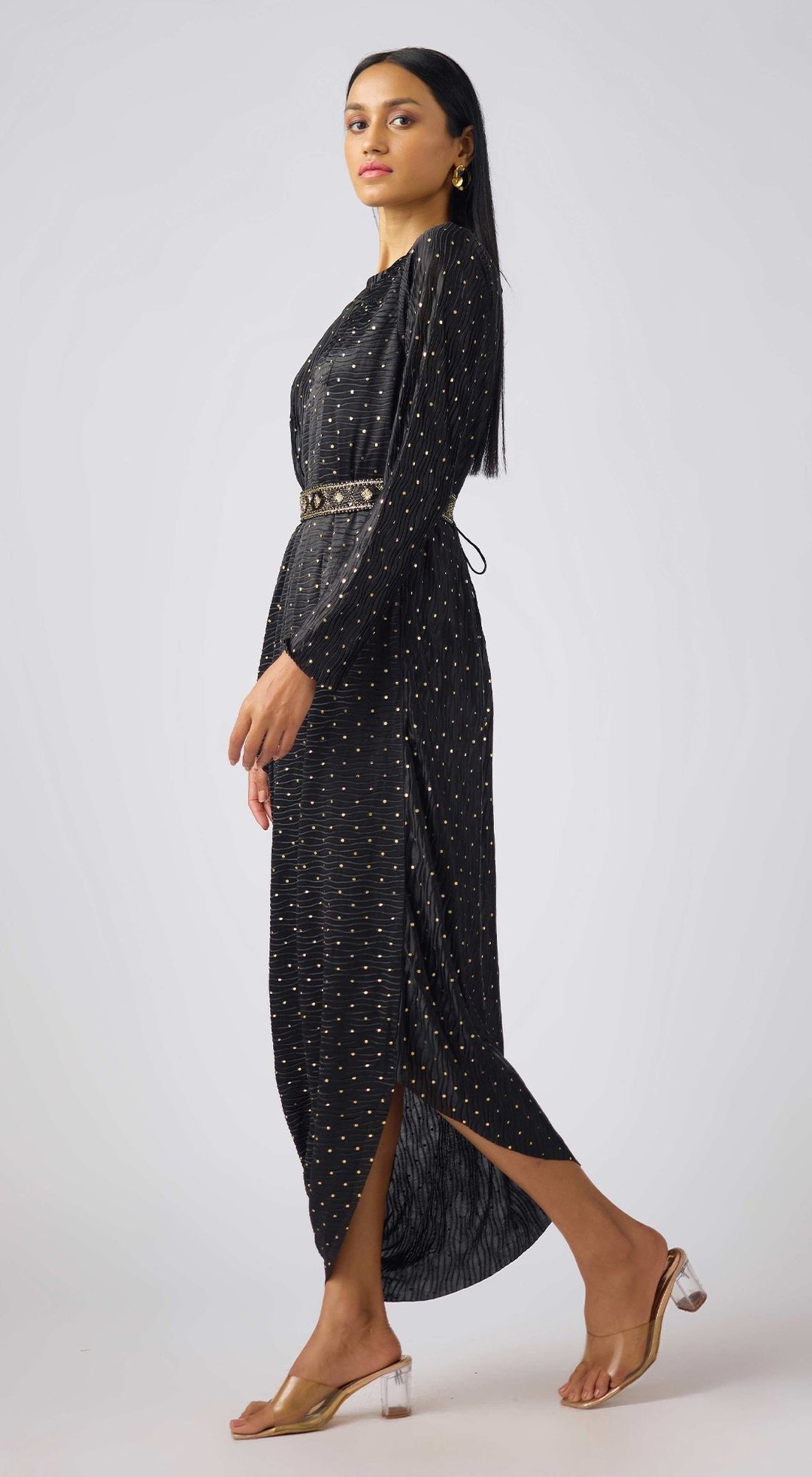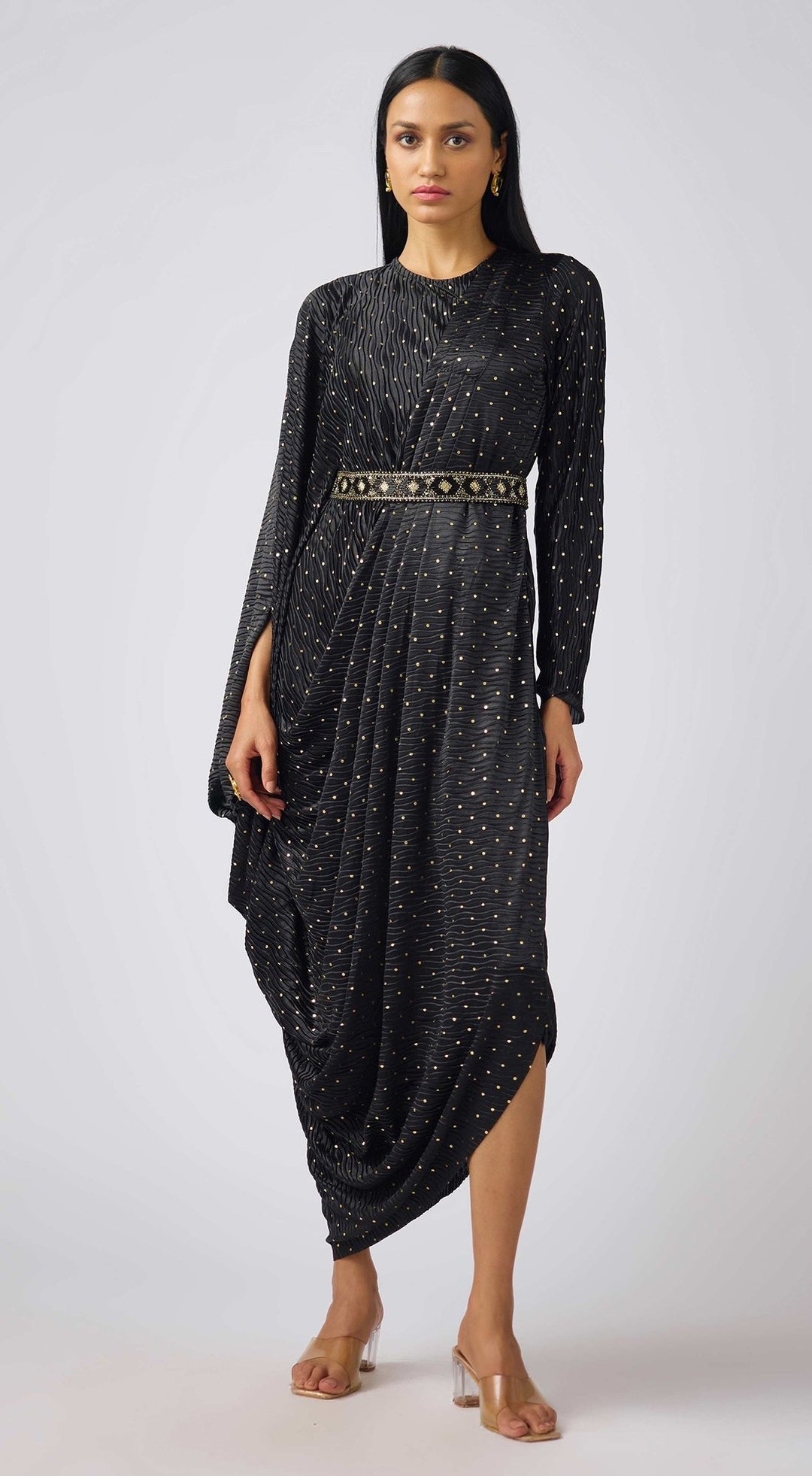Black Crushed Organza Embellished Dress