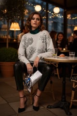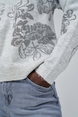Medium Grey Floral Jacquard Jumper with Subtle Shimmer