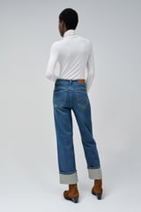 Ice Bleach High-Rise Wide-Leg Jeans with Cuffed Hem