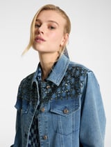 Ultramarine Blue Embellished Yoke Denim Jacket