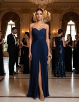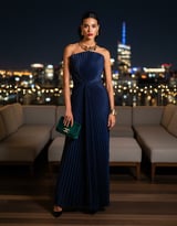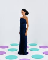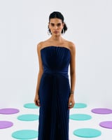 Blue Strapless Pleated Maxi Gown