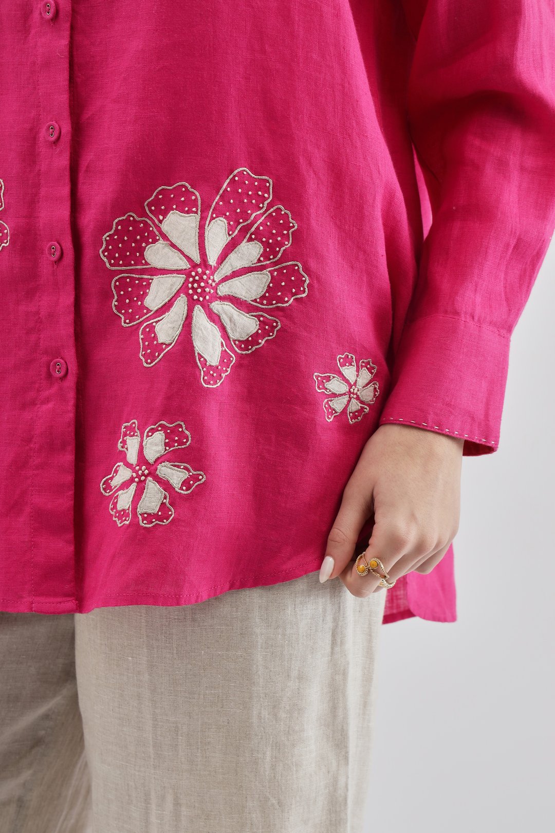 Fuschia Flower Emb Big Shirt