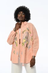 Peach White Embellished Shirt