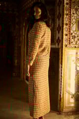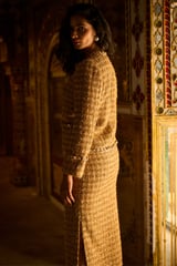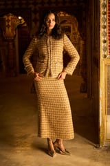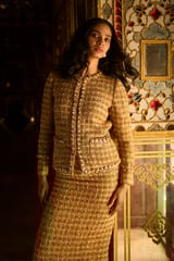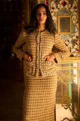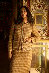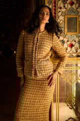 Gold Boucle Cropped Jacket with Pearl Chain Trim