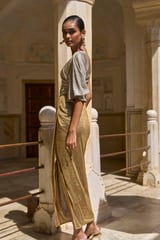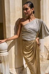Champagne Gold One-Shoulder Metallic Maxi Dress